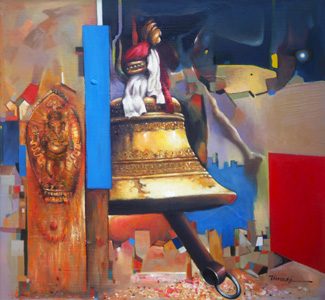 Central to his practice is the motif of the bell—an embodiment of eternal sound